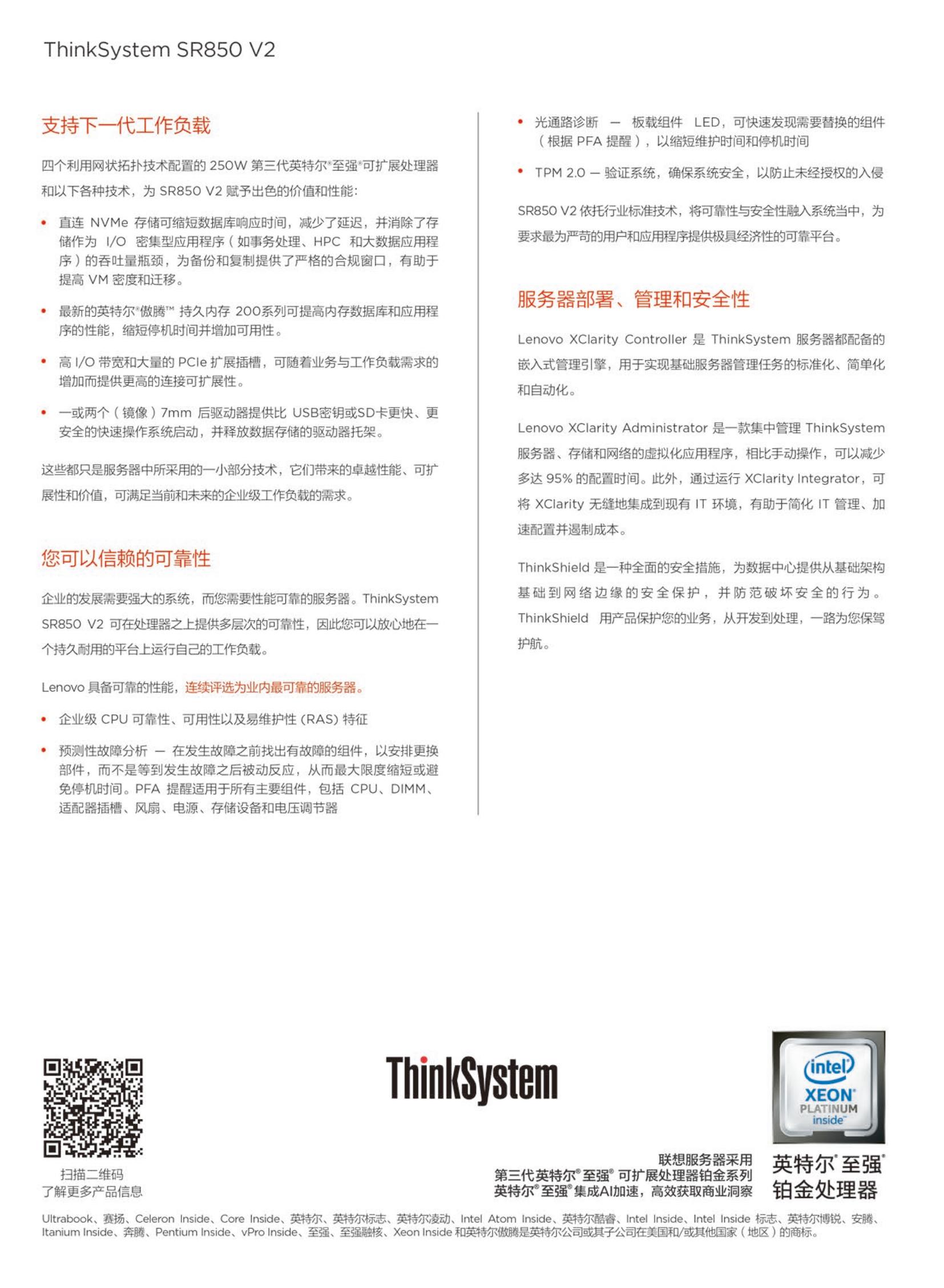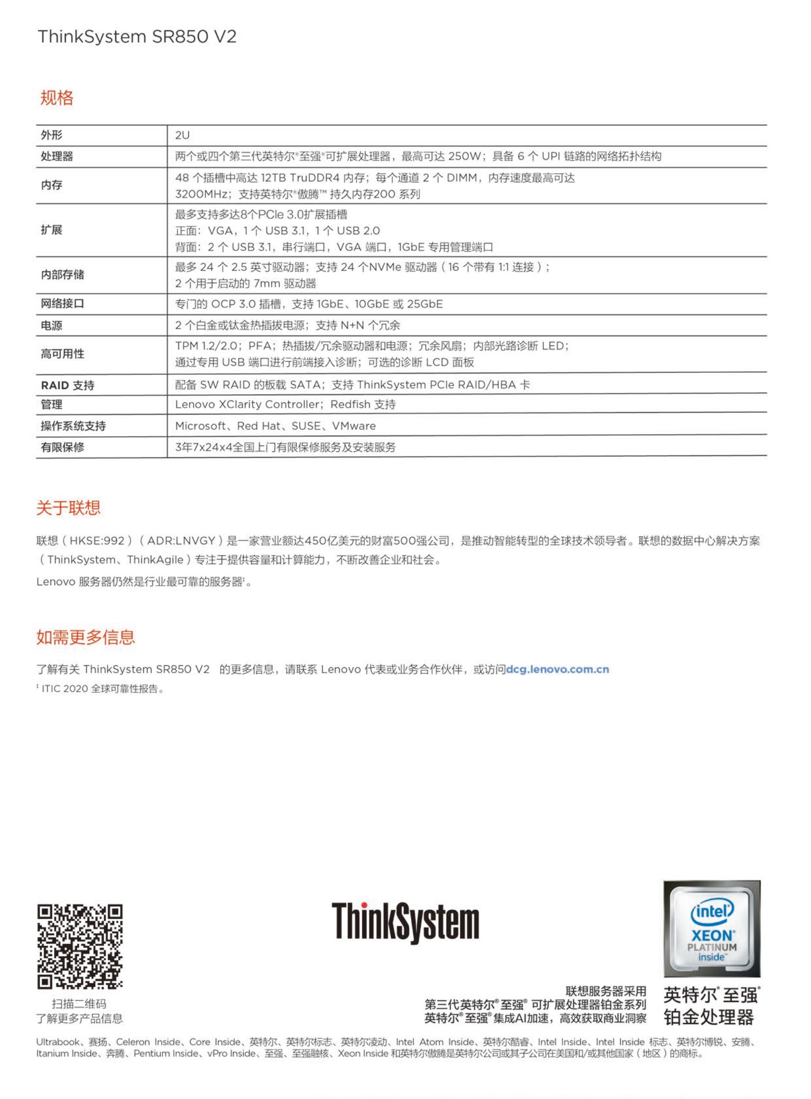 在 2U 空间可支持4 颗 Intel 第三代可扩展处理器