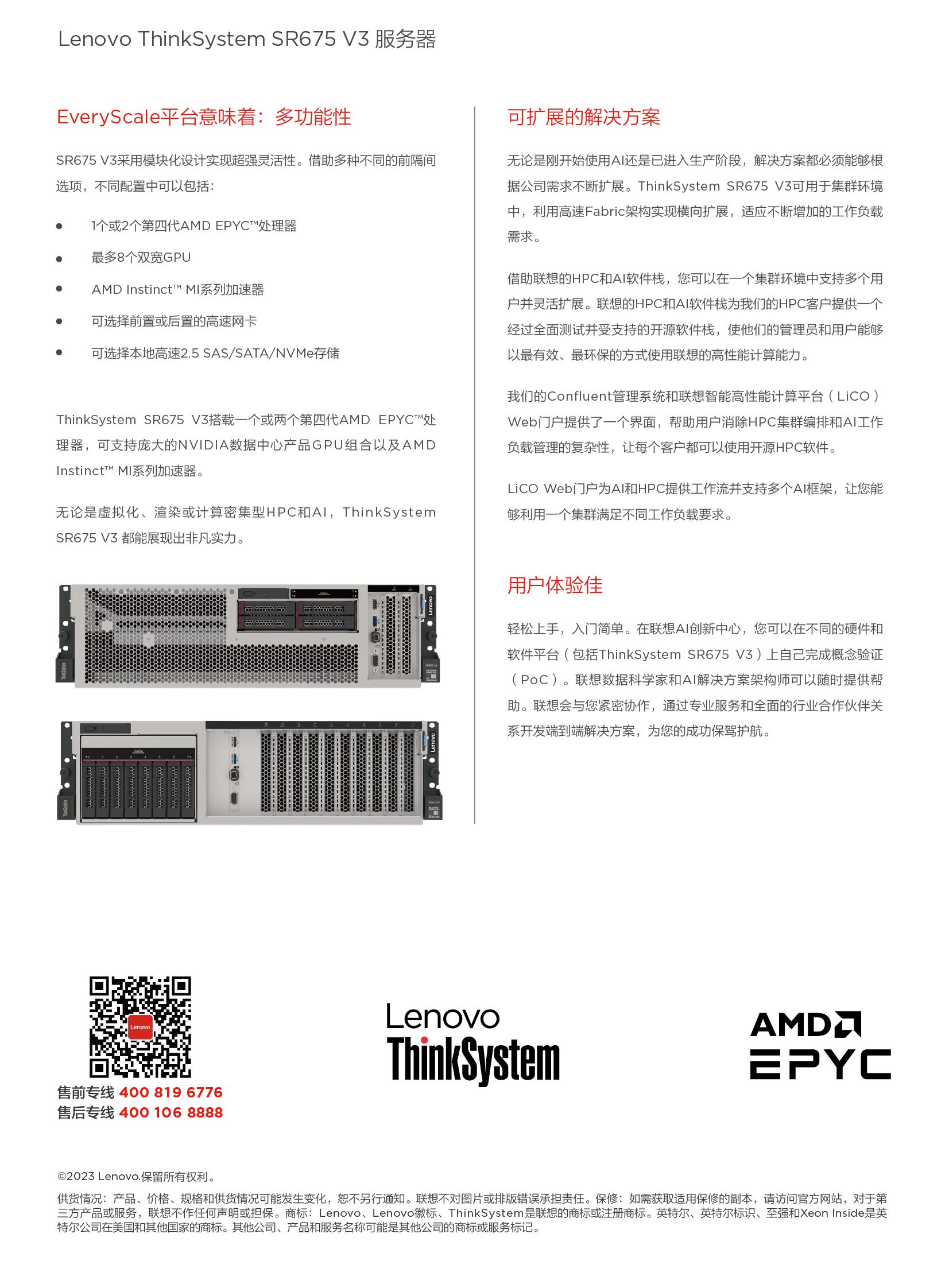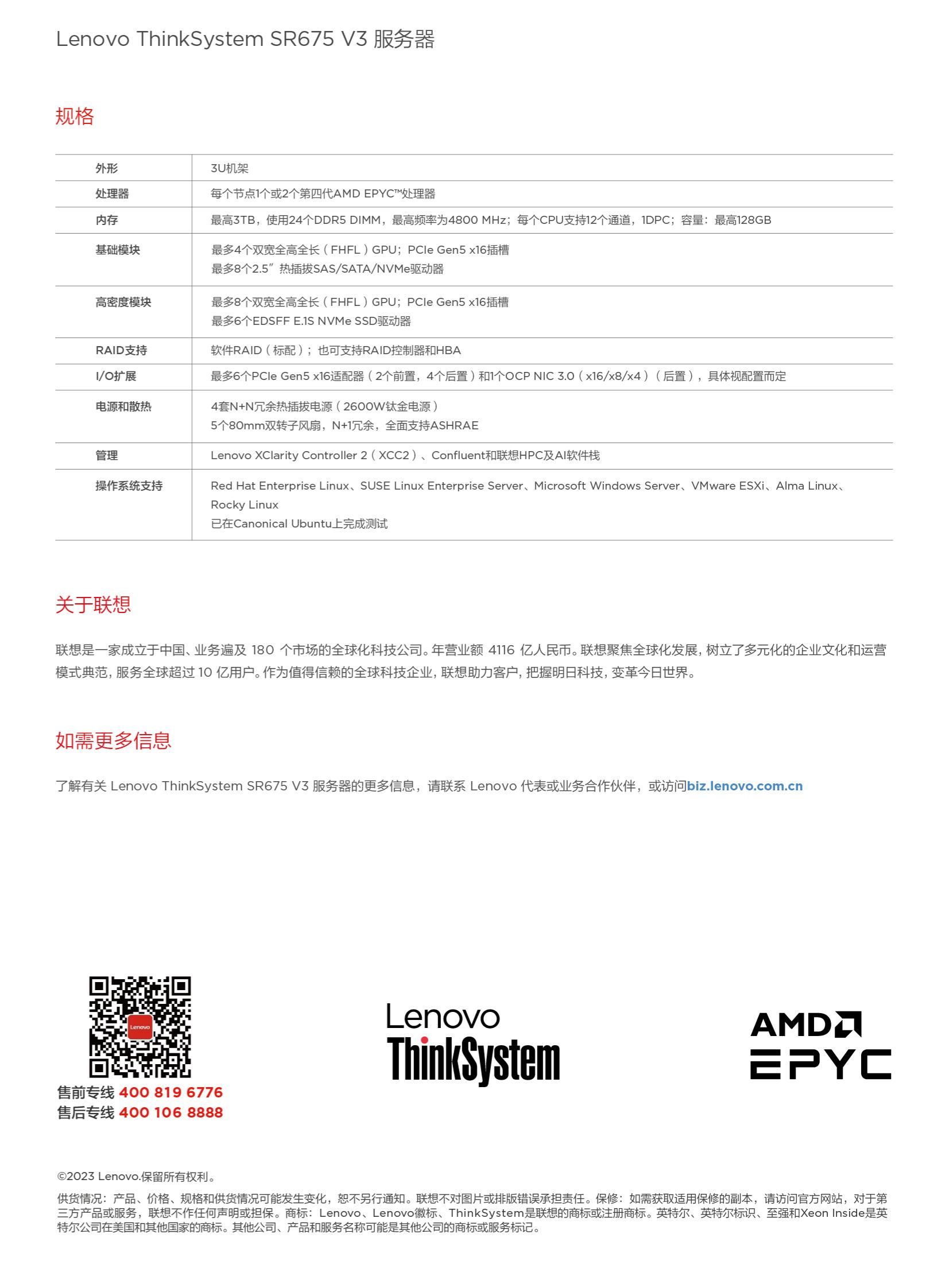 Lenovo ThinkSystem SR675 V3可以为各行各业的人工智能(AI)、高性能计算(HPC)和图形处理工作提供超强算力。