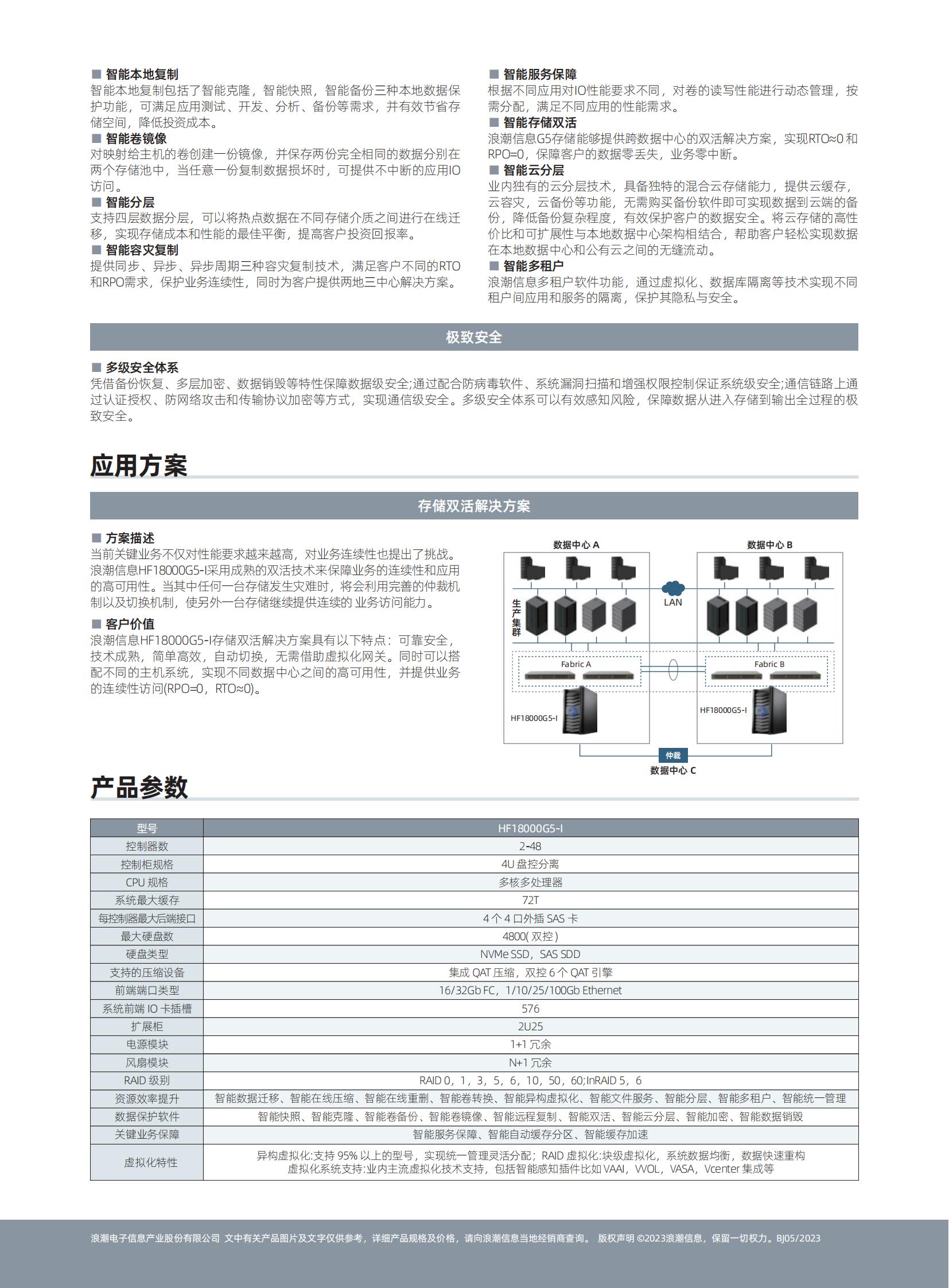 HF18000G5-I在性能、功能、可靠性和易用性上都进行了优化设计,很好的满足了大中型数据库OLTP/OLAP、虚拟化、文件共享等各种应用下的数据存储、容灾、双活、备份等需求 , 并广泛适用于金融、通信、能源、媒资、医疗、教育、SMB 等行业。