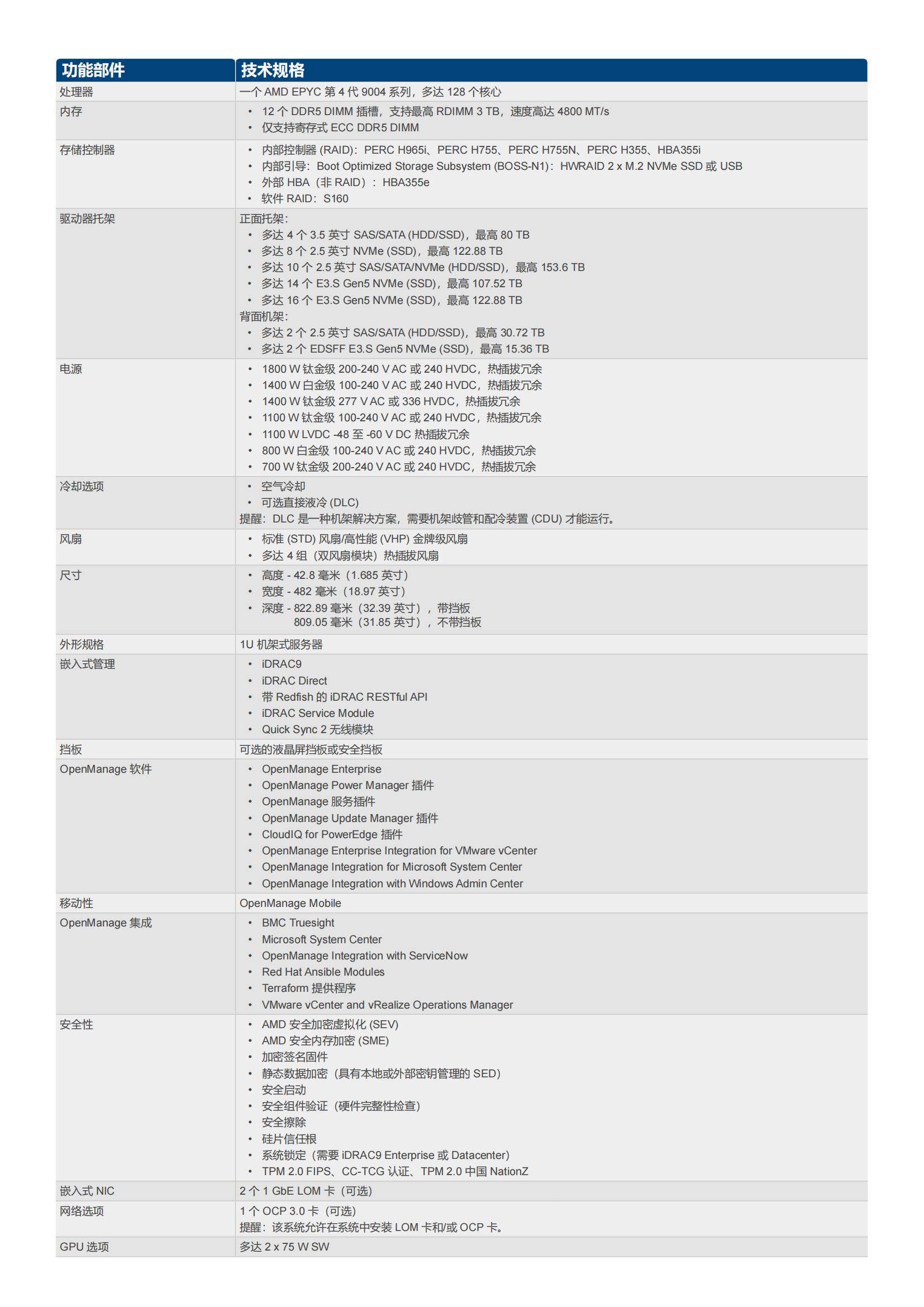• 在创新的空气冷却蓝图中,使用 AMD EPYC 第 4 代处理器,以便每个单路平台的核心数量增加多达 50%。