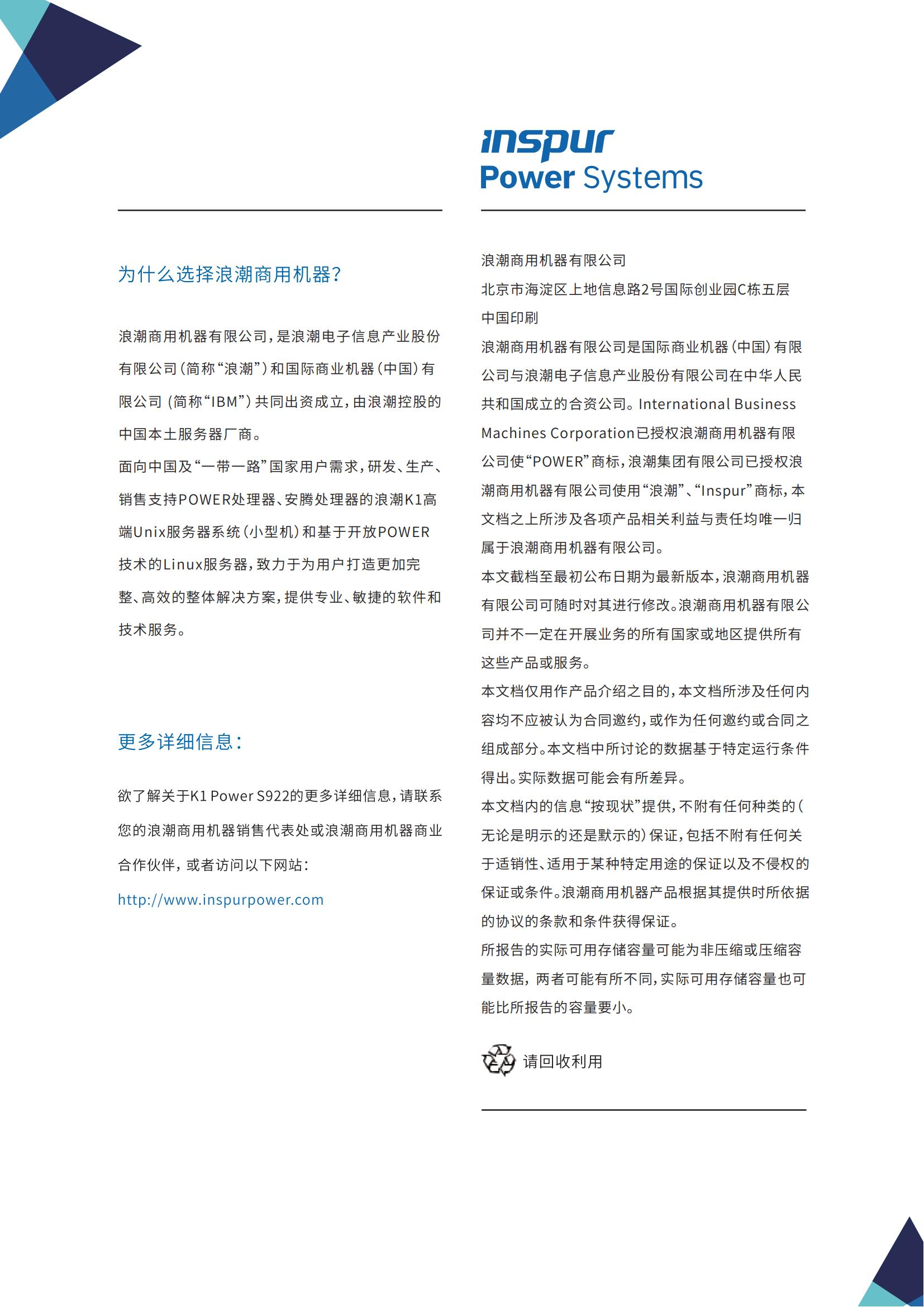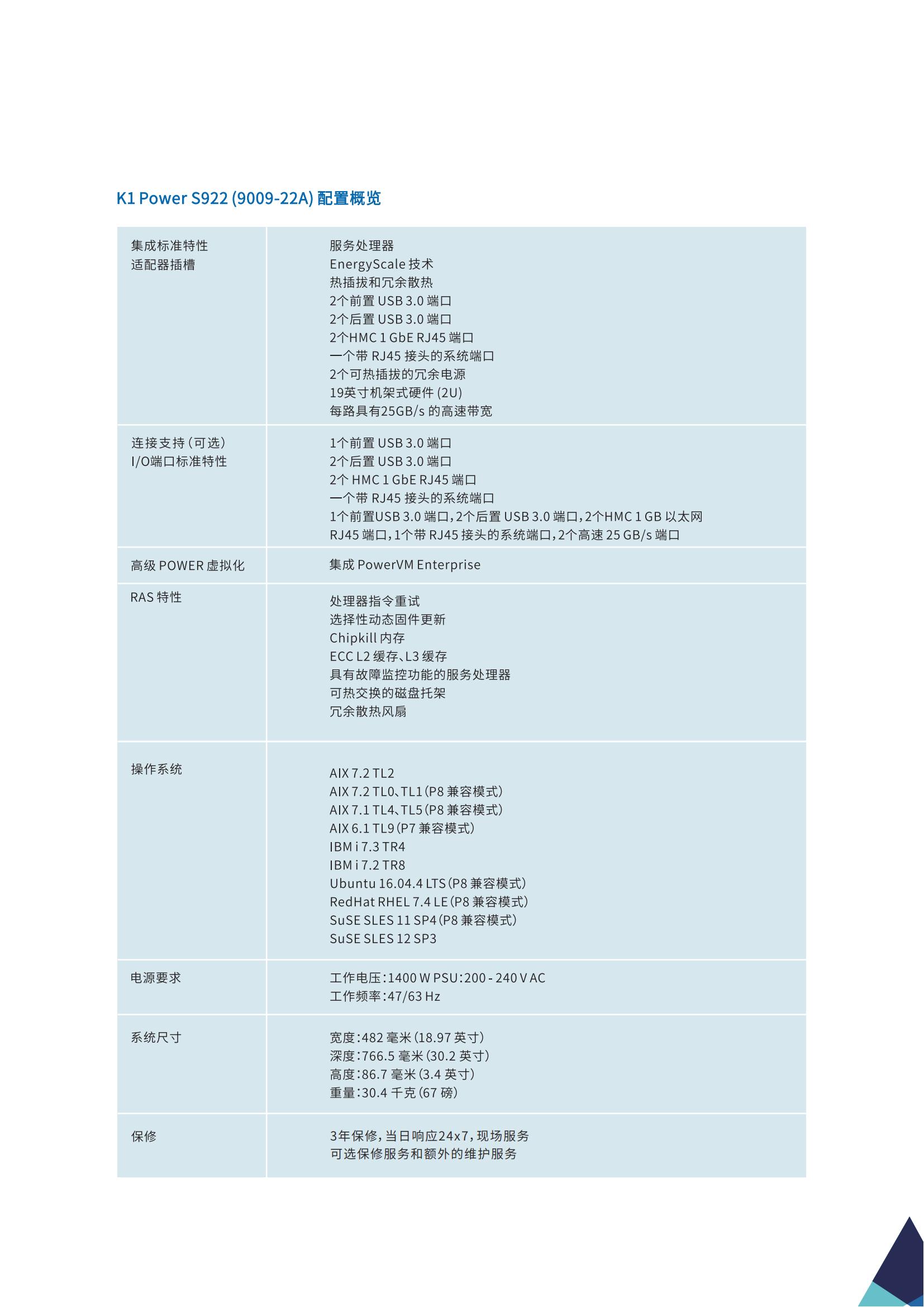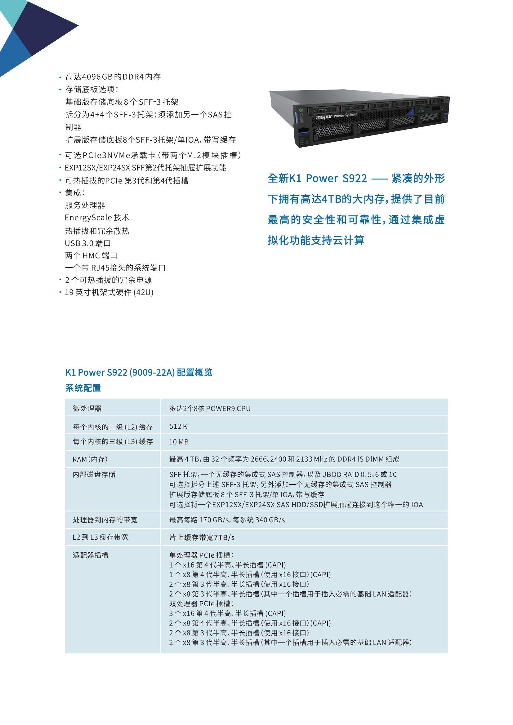 1. K1 Power S922 服务器可轻松融入贵公司的云和认知战略中,为您的关键应用工作负载提供卓越的性价比优势。