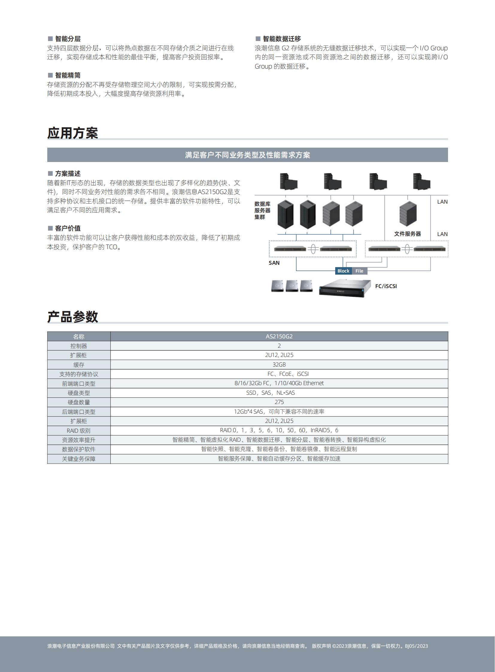 浪潮信息AS2150G2是第二代入门融合活性存储系统,专门为结构化和非结构化的中小型企业级环境设计。AS2150G2可提供可伸缩的1PB容量、支持16GbFC和1/10Gb iSCSI主机接口,是一款集高可靠和高性能于一体的统一存储系统,性能完全满足OLTP和OLAP、虚拟化和文件共享等的需求。另外,AS2150G2具有灵活丰富的软件功能,充分满足中小企业的数据中心容灾、 备份等需求。