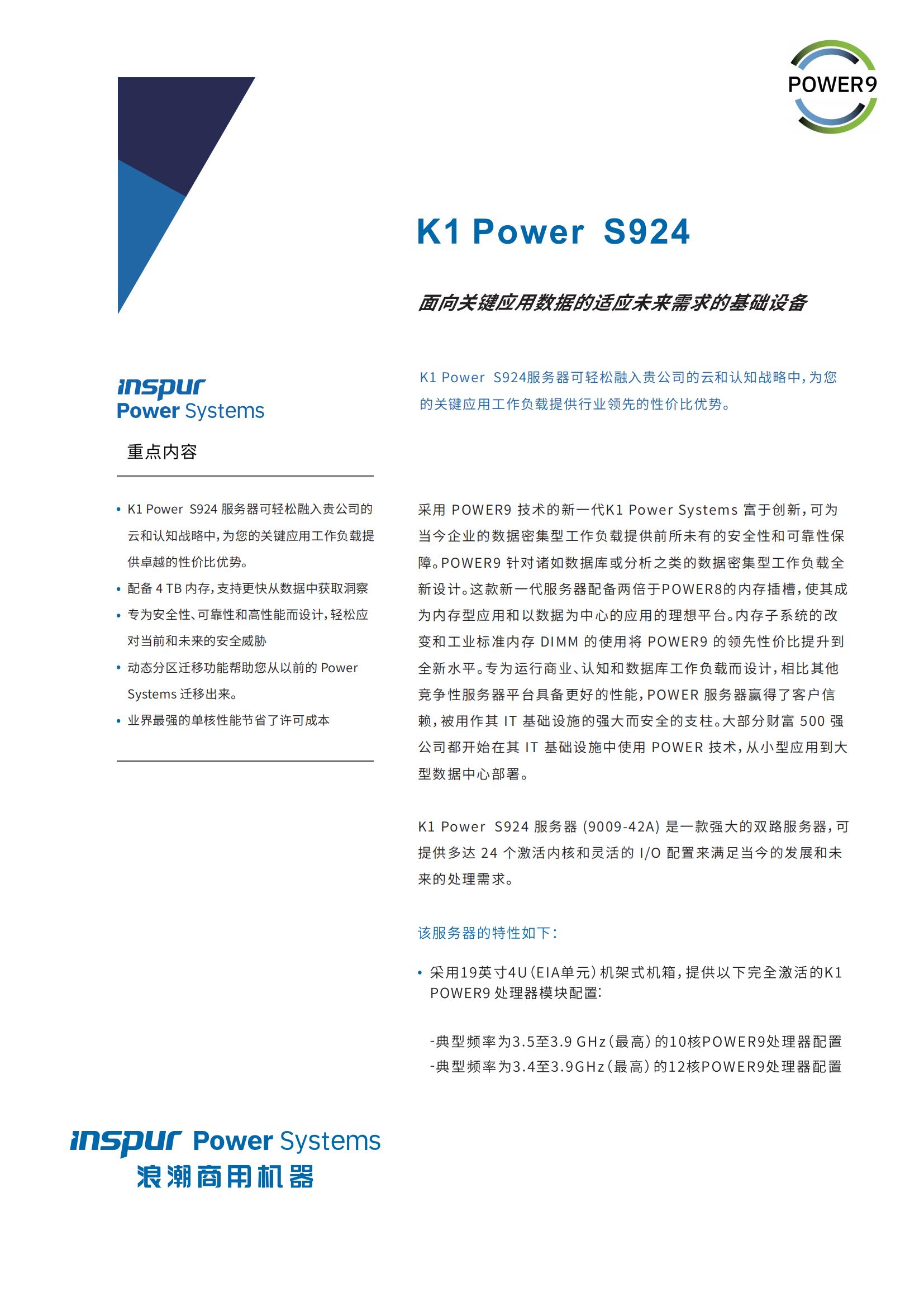 1. K1 Power S924 服务器可轻松融入贵公司的云和认知战略中,为您的关键应用工作负载提供卓越的性价比优势。
