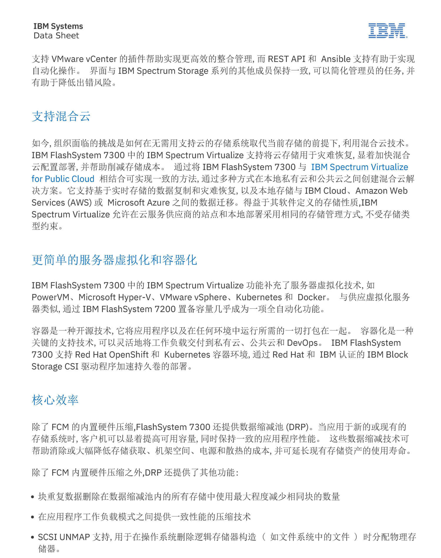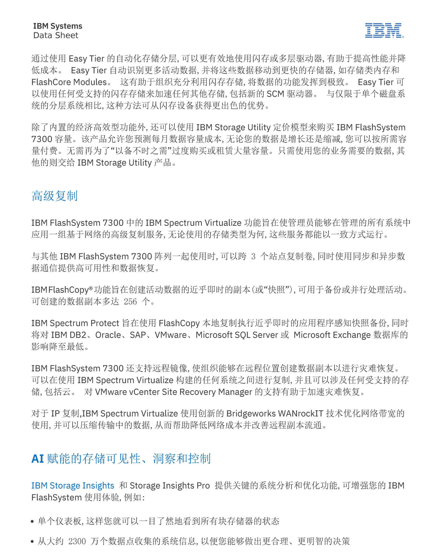 人工智能 (AI) 增强的应用程序、实时大数据分析和云架构需要 更高水平的系统性能和存储容量,为了利用这些技术,全球各地 的企业正在快速推进传统 IT 基础架构的现代化进程。 但对许 多组织而言,员工资源和专业知识不够丰富,并且成本效益是首 要的考量因素。 这些组织在其希望最大化的现有基础架构中进 行了大量投资。 他们需要企业级解决方案,在优化成本效益的 同时简化实现现代化的途径。IBM FlashSystem 7300 专为这 些需求和用例设计,可在不影响应用程序性能的情况下交付网络 弹性。